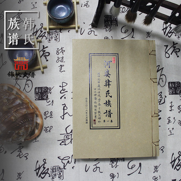 這部影印再版的《河婆韓氏族譜》手書本是祖宗遺下給我河婆韓氏裔孫一份寶貴的文化遺產(chǎn),是一部最完整、最古老的河婆韓氏族譜,其文物價(jià)值十分珍貴。此譜原系由下馬石村在道光廿四年間,遷居清遠(yuǎn)市陽山縣黎埠鎮(zhèn)隔江鄉(xiāng)陳屋圍村,清奇公第二十世孫韓家光家族珍藏。編纂、增修書寫者是清奇公之三子寶鼎公房后裔孫:軍功六品頂戴十五世作熙公之三子,十六世丹桂公,考名學(xué)潮,號(hào)海波。二OO四年十一月九日家光等宗親在深圳將它托付給佑巢宗親代為存管。因續(xù)編《河婆韓氏族譜》,二O一六年冬月,佑巢宗親把它轉(zhuǎn)交給續(xù)譜編委、韓氏宗祠永久珍藏保管。此譜能完整的保留至今,有它非尋常的傳奇經(jīng)歷,上世紀(jì)六十年代的文化大革命,族譜是屬封資修物產(chǎn),一經(jīng)激進(jìn)分子發(fā)現(xiàn),它即刻會(huì)被焚毀,還會(huì)累及保管者。宗親們?yōu)槭箤氋F的宗族歷史資料能完好無損保留下來,小心地把它密封處理包好,藏于山上石巖洞里,后又放置在山上自家祖墳的金斗罐中,讓它在祖宗的懷飽里平安地度過了十年動(dòng)亂,直至文革結(jié)束后才重新取回。沾有祖先靈氣的圣物,更顯得至高無上。