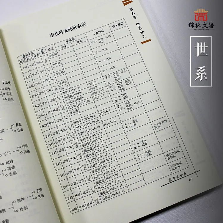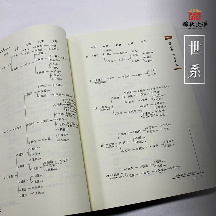 此次三修族譜,克服各種困難,重新收集資料,考查引證,打破創(chuàng)修、二修族譜體例格式重新編排,在不失祖?zhèn)鞯母裥蚨址犀F(xiàn)代文體的前提下進行了較大調(diào)整,目的是讓今人看得懂、后世明得了。第一,改舊譜世系絲線圖為圖表,用圖表形式對世系進行錄譜,按照世輩從左向右排列,再根據(jù)每一世輩子孫人數(shù),自上向下排序,達到可以一次查詢到本人上下三世到五世的祖輩子孫人物關系。第二,對族人的生卒年、簡介等予以記錄。第三,對各支系世系分開,從十世起按支脈分別進行錄譜,使后世方便查詢祖上脈絡。