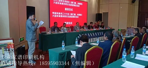 在這里我代表常文氏全體家族、非常感謝河南省錦秋文譜族譜印刷館及焦編輯、王編輯和全體成員,再次感謝家族中的文桂海十四年如一日的堅持修族譜。在此我們家族歡聚一堂,目的是對族譜的重視。在此要成立宗族委員會,我們應(yīng)該為了我們家族興旺感到高興!因為我們文家來到貴州641年,常希文是常遇春六位義子之一,為感恩所以我們家祖上三代姓常。這次應(yīng)該是第一次提到這個事情,在這個事情上,我看到了我們常文家的希望,也看到了我們常文家這個家族的未來,我相信我們這次成立常文氏家族的宗族委員會,一定能夠讓我們常文氏家族更加興旺!