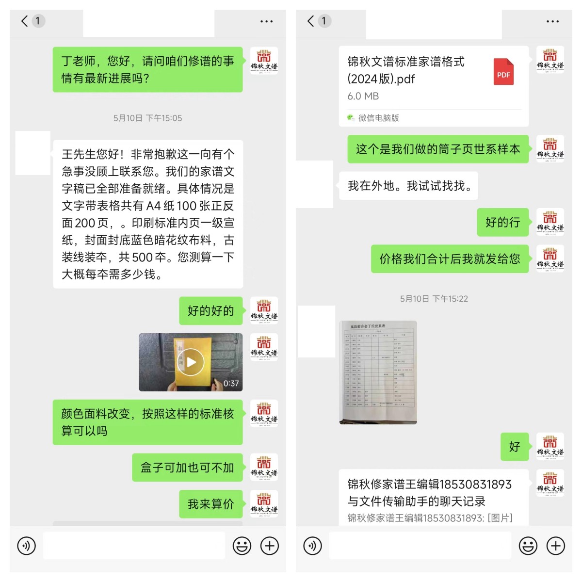 為了滿足丁先生的需求,王編輯認(rèn)真核算了編印報(bào)價(jià),并通過視頻通話的方式,向丁先生展示了家譜館的館藏實(shí)力。透過錦秋文譜宣傳片,工廠內(nèi)先進(jìn)的印刷技術(shù)和精湛的裝訂工藝一覽無余,令丁先生對(duì)家譜的印刷質(zhì)量充滿了信心。