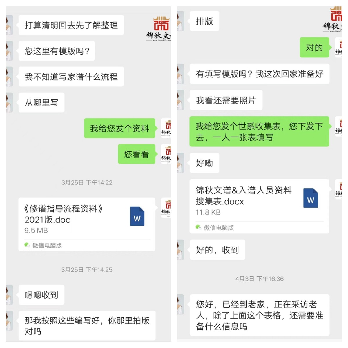 3月25日,陸老師對于家譜編纂的起步步驟倍感迷茫,無從下手。這時,趙編輯如一位經(jīng)驗(yàn)豐富的導(dǎo)航員,為客戶精心準(zhǔn)備了一份詳盡的修譜流程資料,并附上入譜人員資料搜集表。她耐心地向陸老師解釋,只需回家按人填寫好這些表格,再由我們專業(yè)的家譜編印機(jī)構(gòu)進(jìn)行精細(xì)編排與印刷,便可靜待佳音。