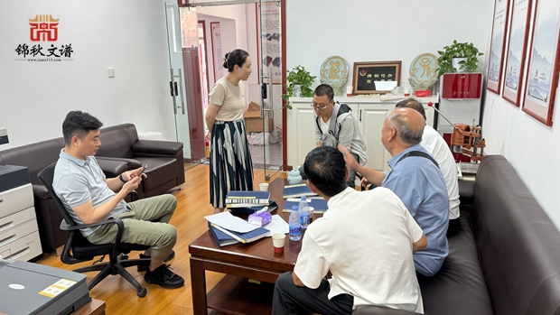 近日,石家莊陳氏家族編委會(huì)一行四人踏入錦秋文譜|中華家譜館,焦、王兩位編輯以文士之禮,精心籌備,親迎客人。陳氏一族此行,旨在細(xì)細(xì)品鑒家譜之風(fēng)貌,甄選紙張之精髓。在眾多宣紙(36克、38克、42克)之中,36克之輕盈,宛如初雪覆紙,既顯文雅又不失厚重,最終贏得了陳老師們的青睞,定為譜牒之基。