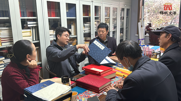 近日,湖北十堰的陳氏家族蒞臨錦秋文譜家譜館,受到了我館焦、王兩位編輯的熱情接待。據(jù)悉,陳氏家族之寶貴資料,洋洋灑灑,共計(jì)三百三十五頁,字?jǐn)?shù)逾二十萬,蔚為大觀。彼等心向古韻,期冀以仿古紙張承續(xù)譜之輝煌,于館內(nèi)細(xì)賞線裝與精裝之異同,終是情有獨(dú)鐘于現(xiàn)代左裝之雅致。