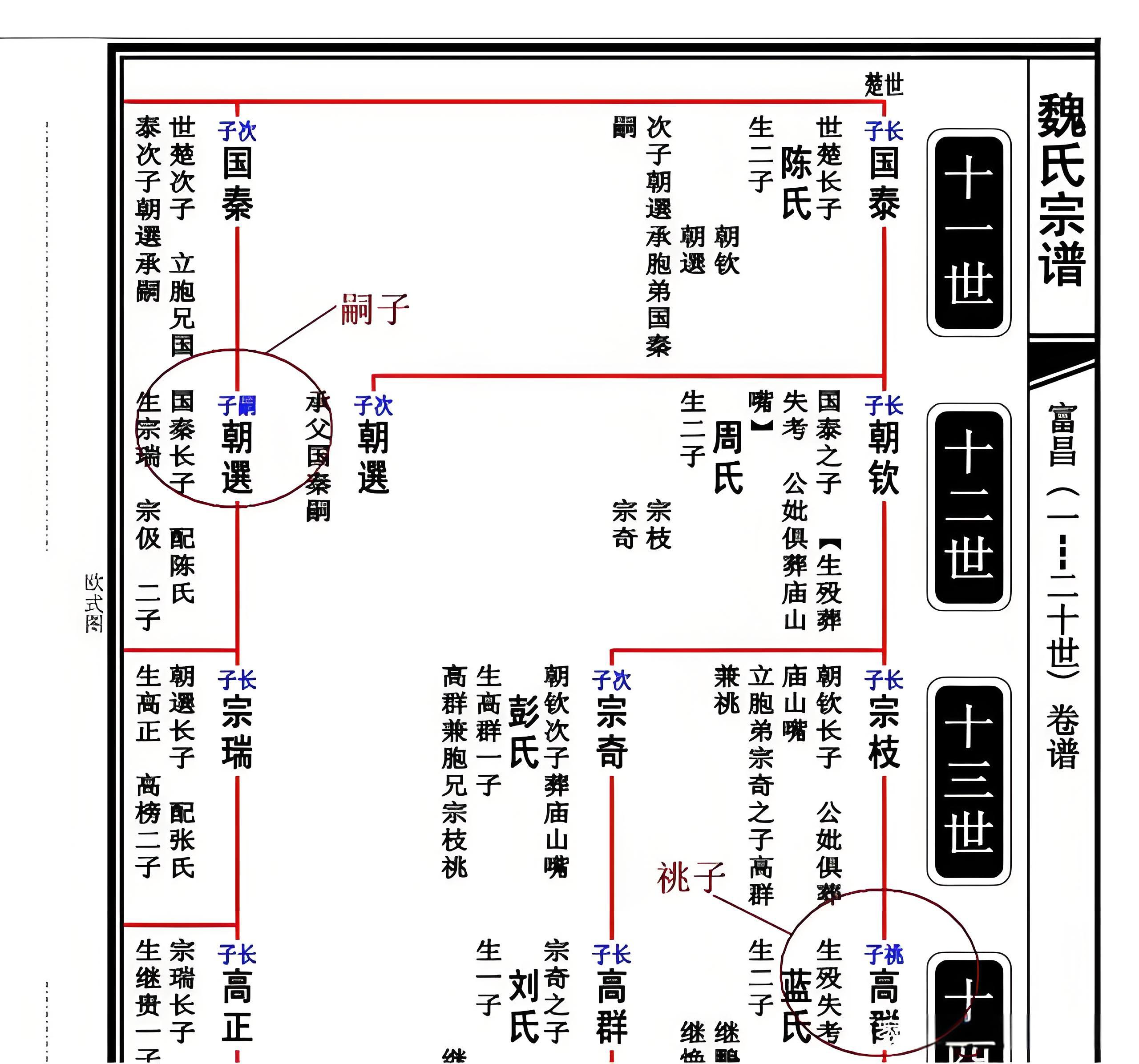 祧子具有雙重身份,他既是本生父母的兒子,又是過(guò)繼房系的兒子。在族譜中,祧子會(huì)在本生父母房系和過(guò)繼房系中都有記載,以體現(xiàn)其特殊的身份和責(zé)任。祧子需要承擔(dān)兩房的祭祀義務(wù),傳承兩房的家族文化與精神。例如,在一個(gè)大家族中,長(zhǎng)房無(wú)子,次房有多個(gè)兒子,經(jīng)過(guò)家族長(zhǎng)輩商議,可能會(huì)從次房挑選一個(gè)聰明伶俐、品德優(yōu)良的兒子作為長(zhǎng)房的祧子。這個(gè)祧子長(zhǎng)大后,既要祭祀本生父母,也要祭祀長(zhǎng)房的祖先,維護(hù)兩房的家族榮譽(yù)與利益。