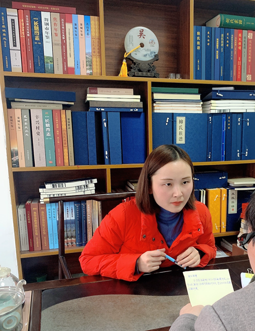 王編輯認真聆聽鄒氏宗親講述家譜情況