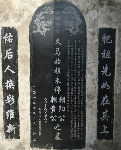 義馬朱氏朝陽公約自明隆慶六年(1572)遵祖訓秉承“長創(chuàng)幼養(yǎng)”之家規(guī),長子離家外出創(chuàng)業(yè),留弱弟養(yǎng)親之教誨,攜弟朝貴,背井離鄉(xiāng),來到當時的苗元,據(jù)縣誌載:苗元人跡稀少,地處荒蕪,是一處窮山惡水之地,朝陽公改名應付當時之惡境,創(chuàng)建朱家坑之名,披荊斬棘、沖破艱險、披星戴月、艱辛拼搏,闖下這片業(yè)跡,開始只有兄弟二人,一擔兩筐,直至清乾隆四十九年(1784)已成當?shù)匾幻T望族,已繁衍九世,人丁興旺,家業(yè)殷實,人才輩出,九世就有英才彪、莊、正、英、桐、俊、賢、端諸公,太學生彪公率眾為朝陽立碑,樹傳表彰這些事績,雖為輩輩口傳,但有碑在為證。這些事已在二〇〇八年修譜序言中敘述已過,在此不再贅敘。