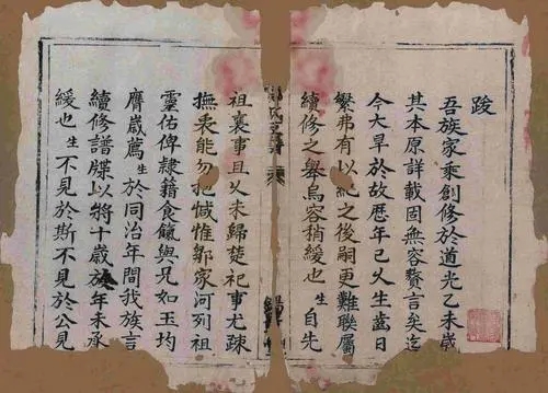 清朝時(shí)期,家譜體例最為完善,其內(nèi)容范圍幾乎涉及到宗族的方方面面。包括譜序、恩榮錄、世系圖、世系譜、凡例、家法族規(guī)、字輩、譜論、祠堂、祠產(chǎn)、墳塋、傳記、行狀、契約、藝文、遺像、贊詞、余慶錄、領(lǐng)譜字號等三十幾項(xiàng)內(nèi)容。