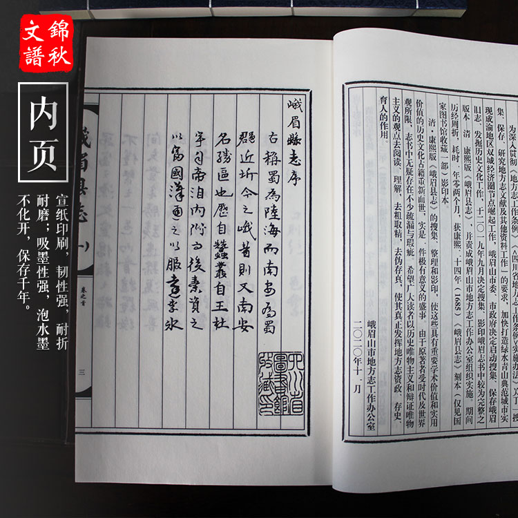 清 康熙版《峨眉縣志》的搜集、整理和影印,使這些具有重要學術(shù)價值和實用價值的歷史文化古籍重新面世,實是一件極有意義的盛事。由于原著者受時代及世界觀所限,志書中無疑存在不少疏漏與瑕疵。希望光大讀者以歷史唯物主義和辯證唯物主義的觀點去閱讀、理解,去粗取精,去偽存真,使其真正發(fā)揮地方志資政、存史、育人的作用。