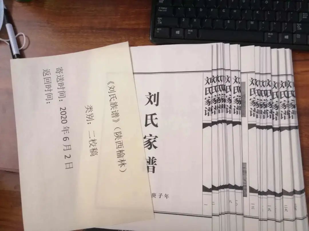 族譜編修新進展,陜西榆林劉氏族譜二校稿完成已寄送。