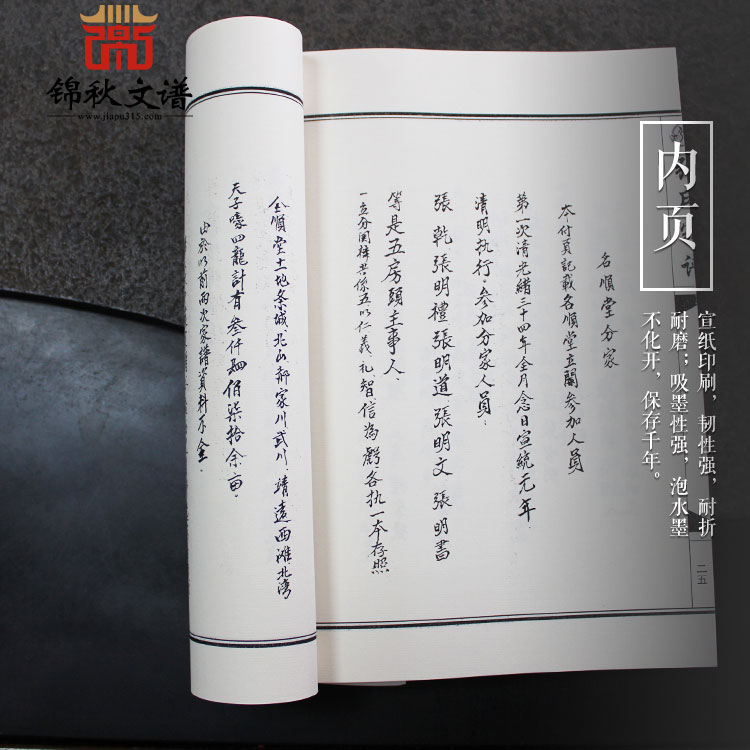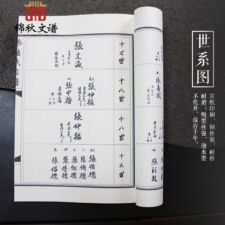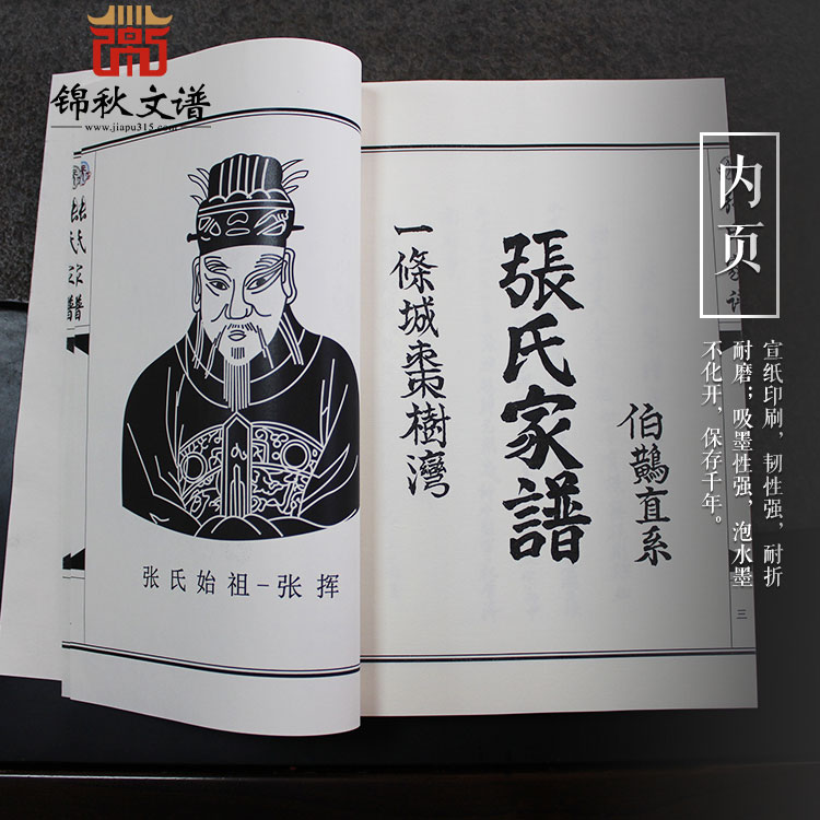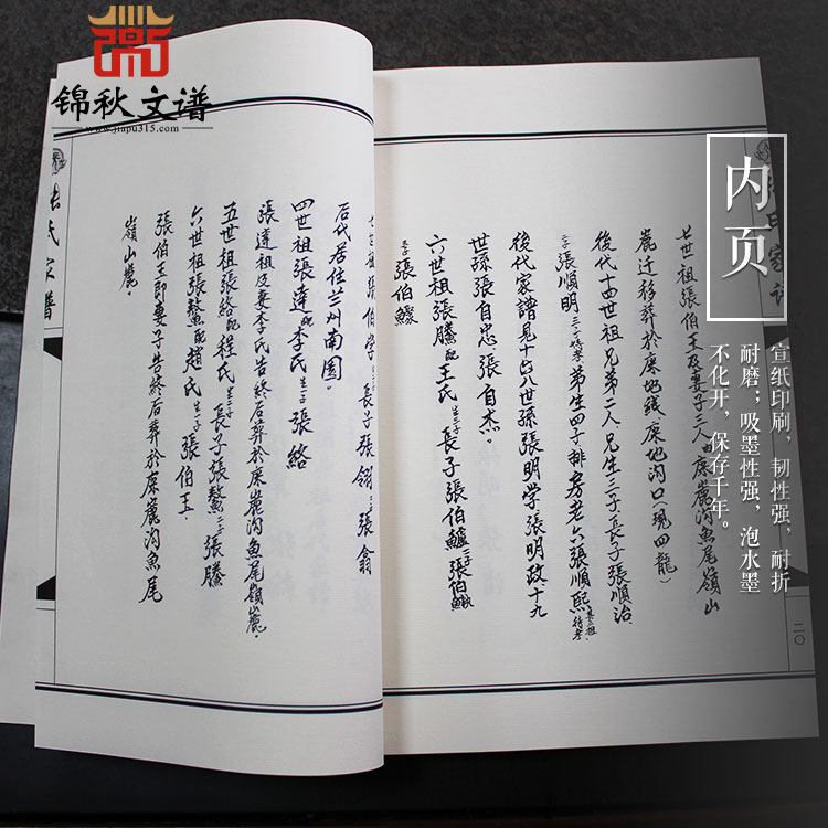 (伯鶴直系《張氏家譜》訂書線和包角圖)
