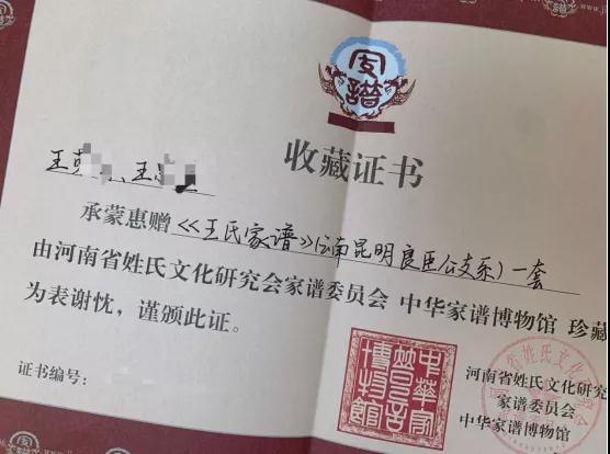 為提高大家對捐贈家譜的重視,錦秋文譜決定為被選中收藏的家譜頒發(fā)收藏證書,以資鼓勵。