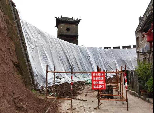 世界文化遺產的“平遙古城”高達25米的城墻也慘遭暴雨侵害坍塌。