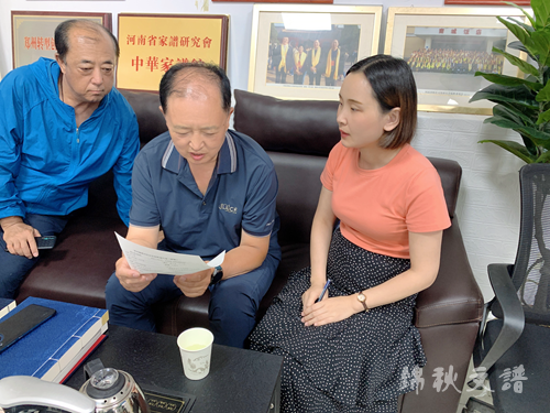 在參觀之后,齊坐辦公室。劉氏宗親查了眾多的家譜樣書資料,和自己家的家族成員信息進(jìn)行對(duì)比參照,最終找到適合自家的排版方式:圖表結(jié)合式。