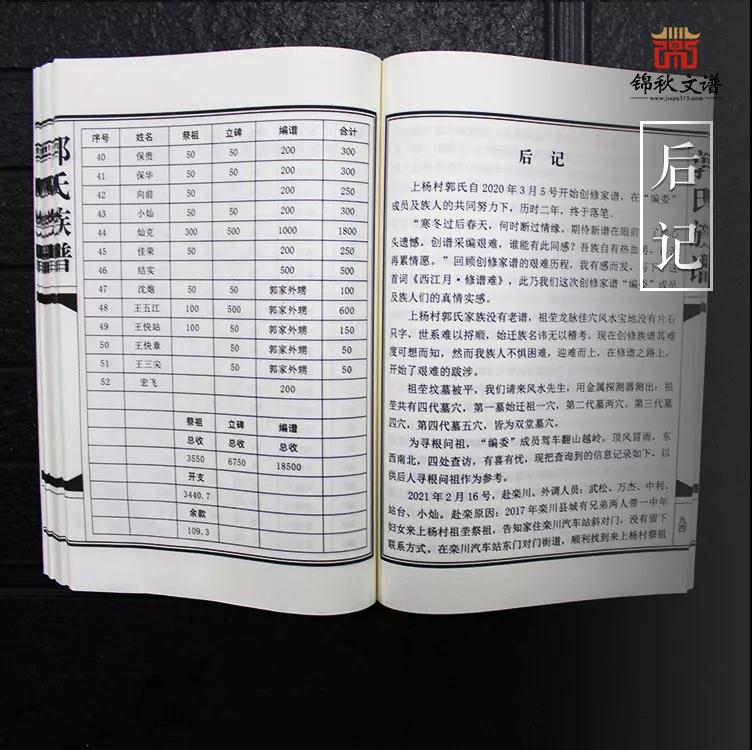 四、郭氏族譜通過理清本村現(xiàn)今5個分支近8代世系的傳承關(guān)系來編排,修譜事宜得到了全村人的積極響應(yīng)和支持,有錢出錢,有力出力,尋親訪友,查找資料。