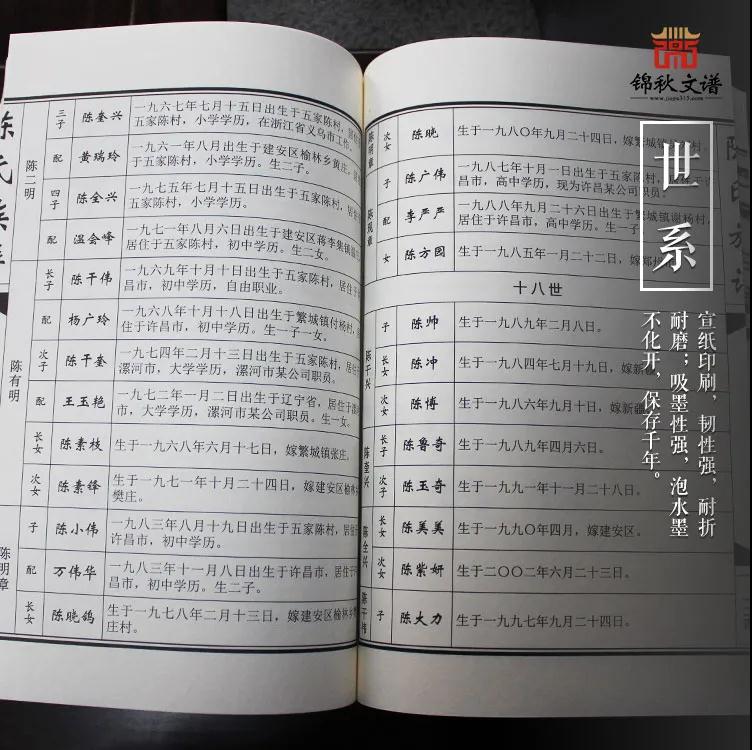 《陳氏族譜》收錄范圍從始遷祖一世到公元二零二零年六月三十日出生者,方便后人查閱,不必?fù)?dān)心收錄不足的問題。也體現(xiàn)了陳氏家族此次編修家譜對族人們的關(guān)心和重視家譜除傳承外的價(jià)值。