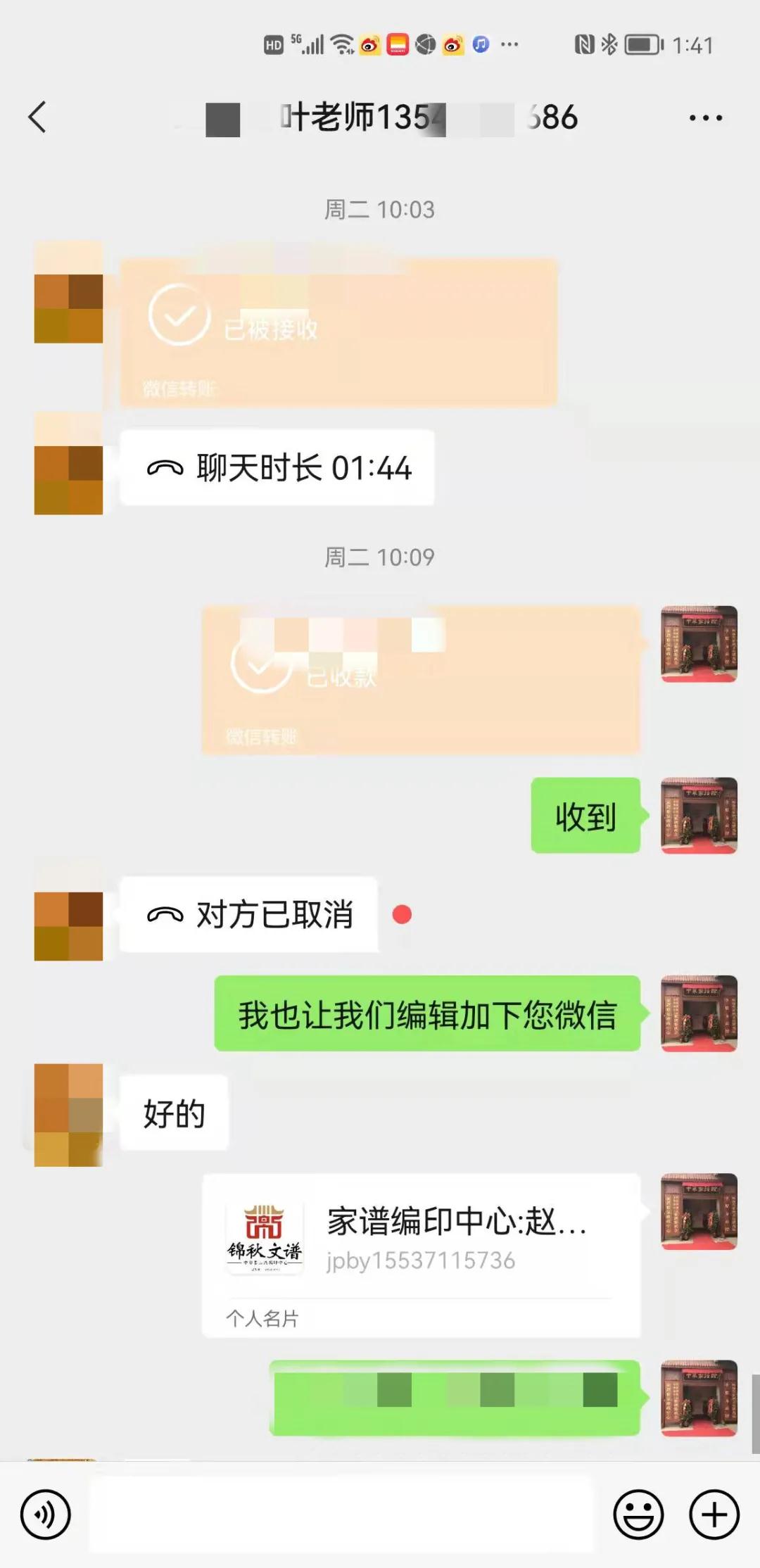 在聯(lián)系到錦秋文譜后,錦秋文譜趙編輯介紹了家譜的知識,并給葉老師介紹了一些家譜編修時的其他內(nèi)容,葉老師非常滿意錦秋文譜趙編輯的專業(yè)度,在趙編輯的幫助下,葉老師逐漸把其他內(nèi)容也搜集整理完畢,成了一套完整資料。