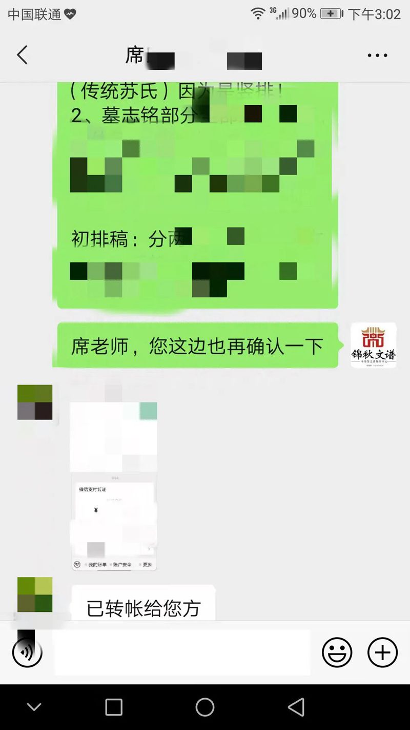 在了解到錦秋文譜在家譜行業(yè)的專業(yè)度后,馮老師馬上與錦秋文譜取得了聯(lián)系,并逐步給趙編輯發(fā)送家譜資料,趙編輯給予了馮老師在家譜上的修譜意見,趙老師覺得十分受用,雙方隨即便簽署家譜編修協(xié)議。