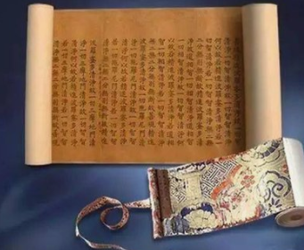 卷軸收卷之后,有些書卷還會用紡織品裹封,以便保護書卷免于灰塵、水污及蟲鼠的直接損害。敦煌莫高窟藏經(jīng)洞發(fā)現(xiàn)的許多經(jīng)卷、文書均用紡織品的書帙封裝,有的還包了兩層。書帙上一般還有書名題簽,這樣很容易就可以讀到書籍的題名、篇數(shù)和卷數(shù)。