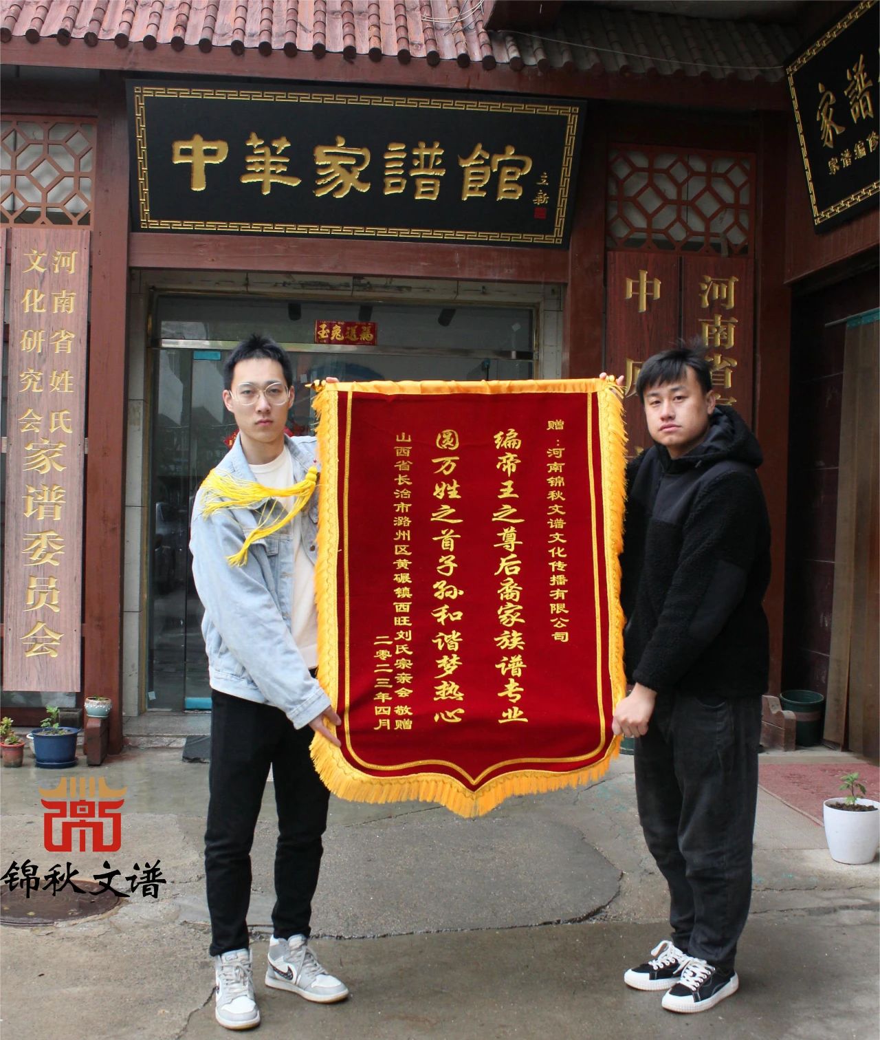 經(jīng)了解,原來(lái)是山西長(zhǎng)治劉氏家族贈(zèng)予錦秋文譜的一面錦旗。