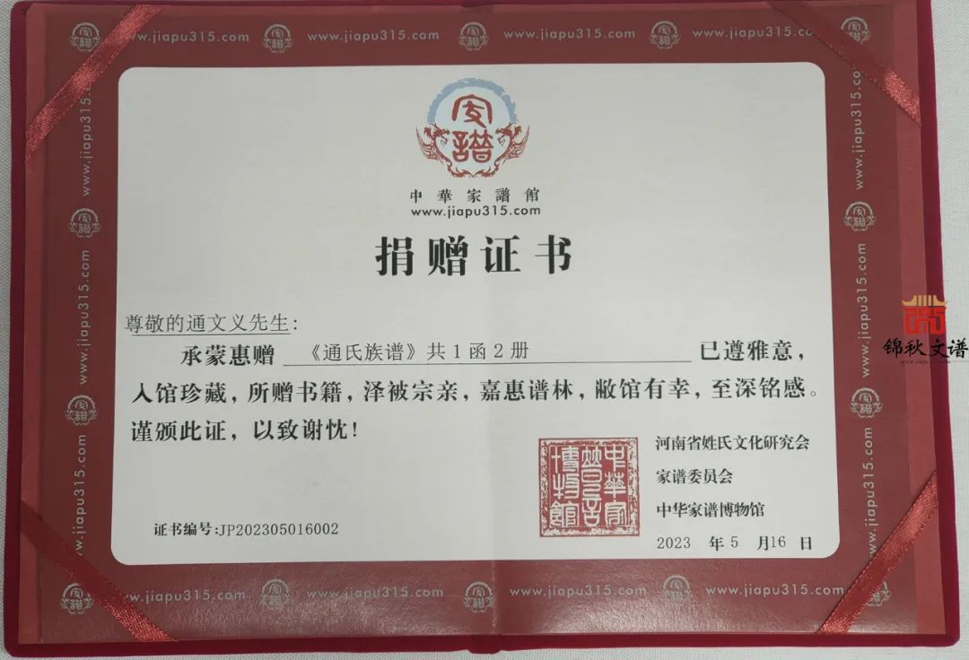 日前,河北省張家口尚義縣通氏家族以郵寄方式向我館捐贈(zèng)《通氏族譜》。張編輯接受了饋贈(zèng),并向捐贈(zèng)者通文義老師回寄了收藏證書。