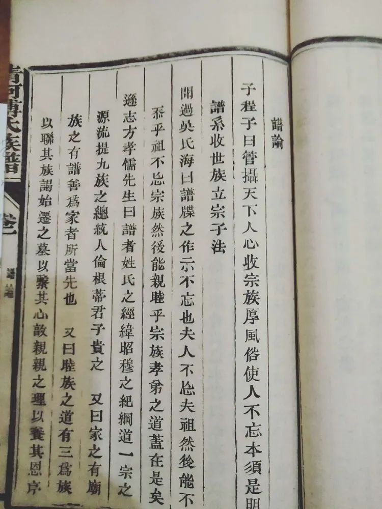 家譜中的譜論,又被稱之為譜說、譜法、先儒譜說、先賢譜論、述古譜略、家譜引義、譜學(xué)論略等,主要就是收錄古代經(jīng)典有關(guān)家譜的論述和歷代名人對于譜學(xué)的歷史、修譜的意義、原理、方法等方面加以闡述。另外在不同地區(qū),其譜論還有不同的樣式,例如在安徽、江西等地的家譜中,譜論有修譜五法、作譜五難、譜有六不書、譜例七款、作譜九戒等內(nèi)容。