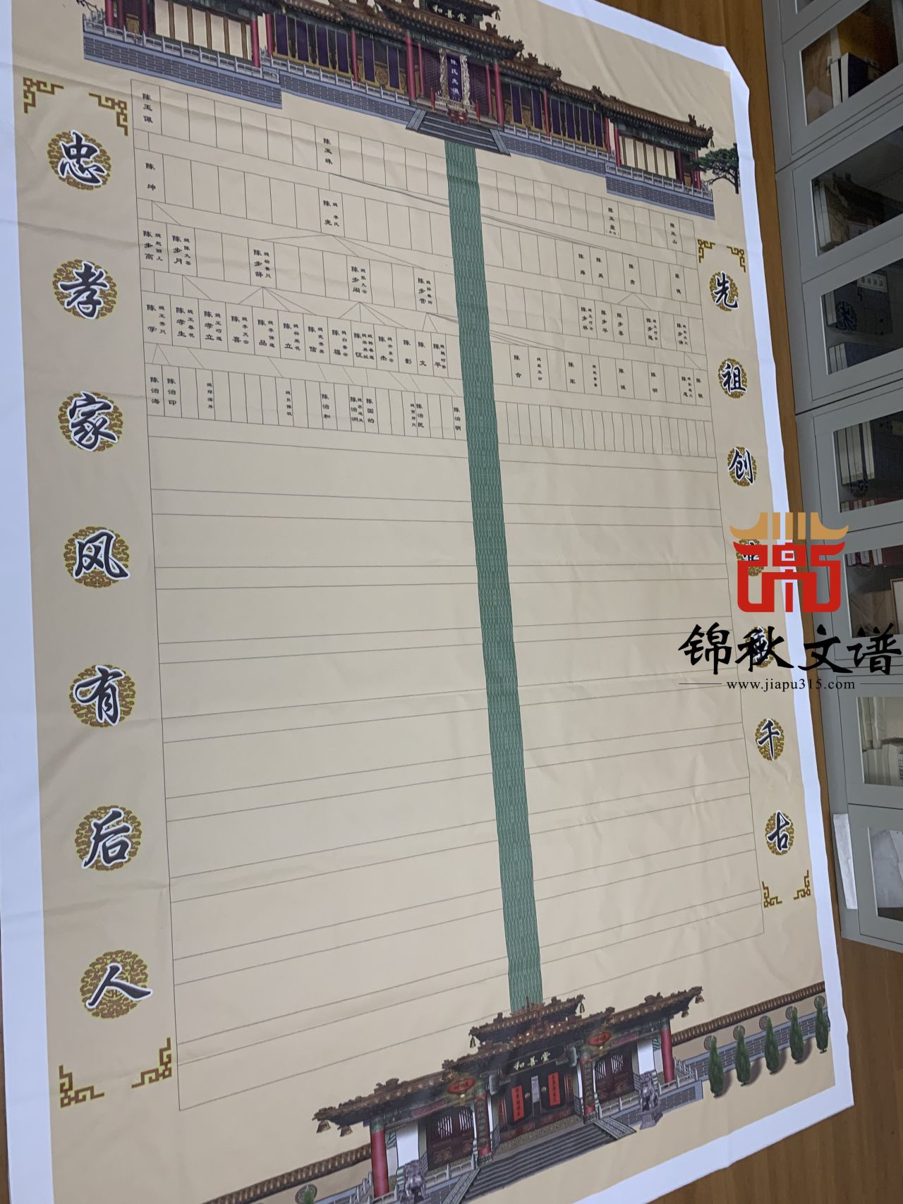 陳氏宗親為了完成編修家譜這一多年期盼,特地到我館實地考察,在簽約編印家譜的同時,也定制了一幅長3.3米,寬2.2米家譜掛軸。