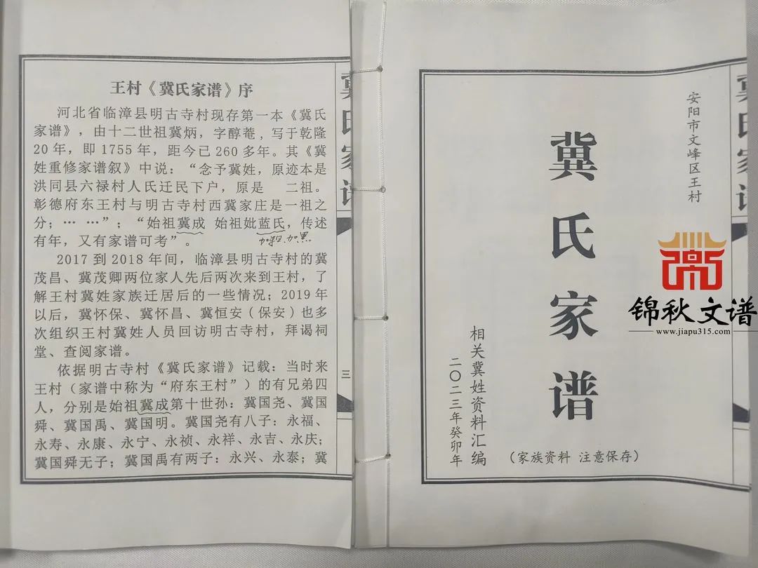 編修進展:河南省安陽市《冀氏家譜》二校稿已郵寄。