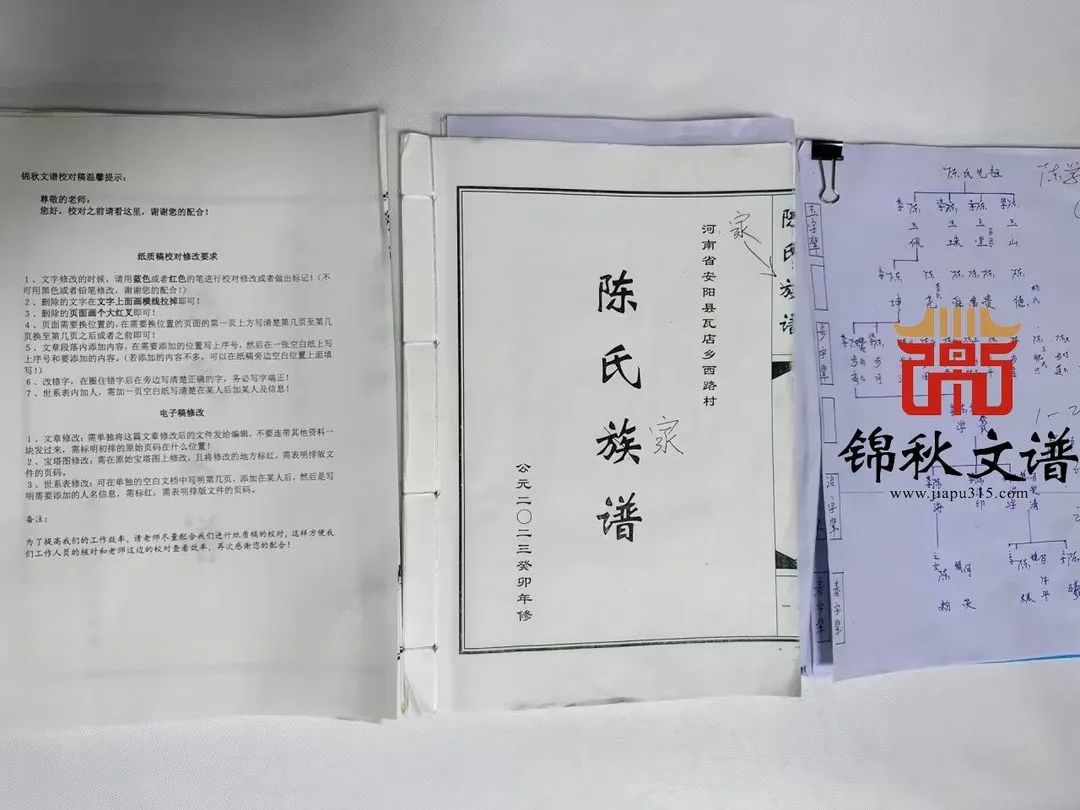 編修進(jìn)展:河南安陽陳氏家譜二校稿郵寄。