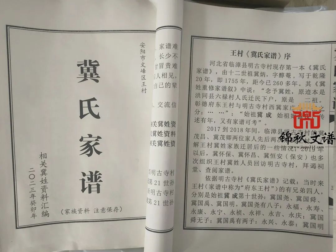 編修進展:河南安陽《冀氏家譜》三校稿已郵寄。