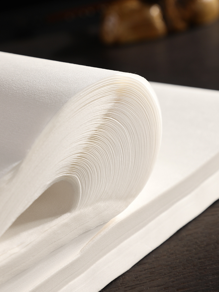 宣紙的特性使其深受喜愛,其潤(rùn)墨性好,耐久性強(qiáng),具有抵抗老化的能力,不易變色。它的材質(zhì)純凈,紋理清晰,即使搓折也不會(huì)造成損壞。宣紙的潤(rùn)墨性極強(qiáng),其滲透性好,柔滑適度。光而不滑,這些特性使宣紙成為題詩(shī)作畫和保存檔案史料的理想選擇。