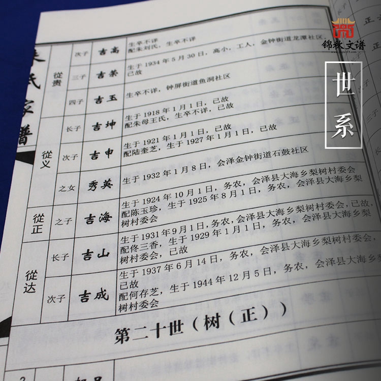 族譜是記錄同宗共祖有血緣群體世系人物和事跡等方面情況的歷史圖冊(cè),撰修族譜是為了尊敬祖宗,沿襲先祖體制,昭穆不亂,糾錯(cuò)創(chuàng)新,收宗睦族,讓后人知世系、明輩份、識(shí)尊賢、辨長(zhǎng)幼、承祖德、興家業(yè)、激勵(lì)子孫愛(ài)家愛(ài)國(guó)。