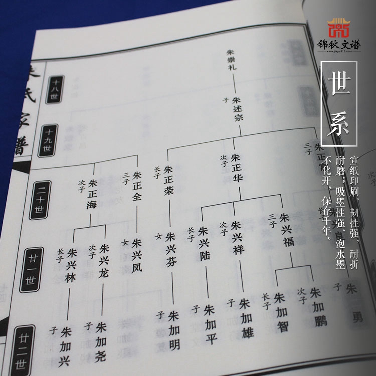 為了讓族譜更加完整全面,此次編寫,我們成立了朱氏族譜編委,由理事長(zhǎng):朱興友,副理事長(zhǎng):朱興文、朱自文、朱加友,理事會(huì)成員:朱興良、朱金祥、朱龍貴、朱龍發(fā)、朱興林、朱興福組成,聯(lián)絡(luò)各房支系的宗親,廣泛進(jìn)行了調(diào)查研究,認(rèn)真收集了有關(guān)資料,去粗取精,去偽存真。突顯了各房世系脈絡(luò),新增了人丁名錄。對(duì)各房支系圖進(jìn)行了逐一核對(duì),確保信息準(zhǔn)確。