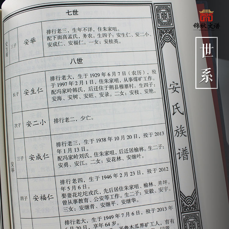 此家譜之創(chuàng)建是在沒有前人留下確鑿的資料的基礎(chǔ)上編制的,難度可想而知,但我安氏族人不懼艱辛,走訪考證,查閱史記資料,不厭其煩,不懼辛苦在會長的精心組織匯總和大力支持下,協(xié)調(diào)各方關(guān)系,在秘書長對具體工作的周密安排下,各支系負(fù)責(zé)人收編各村家譜,艱辛繁瑣之異常,一言難盡。在編制過程中,因年代久遠(yuǎn),宗親分散,沒有證物,斷代現(xiàn)象較多,在編制過程中,遵循“求真”原則,在推斷合情合理的給予對接并標(biāo)注,對有疑問的,小支放在大支中,但不對接,以期后代完成,基本全部收集了各地安姓花名。此書是我們第一次創(chuàng)編,在形式和內(nèi)容上難免有不盡人意之處,如發(fā)現(xiàn)問題和不足,在后期續(xù)譜中改進(jìn),望大家諒解批評指正。