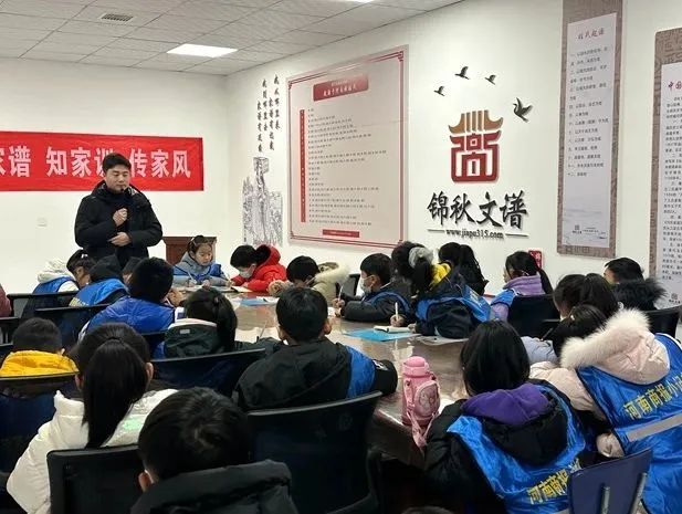 2024年1月20日,來自河南商報(bào)的60余名小記者,專程到中華家譜館參觀學(xué)習(xí)、了解姓氏文化的魅力、家規(guī)家訓(xùn)的重要性、字輩帶來的影響以及家譜的基礎(chǔ)知識。中華家譜館修譜專家焦帥熱情接待了孩子們。