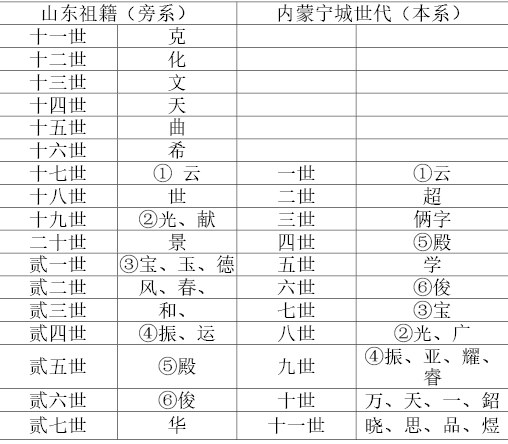 山東祖籍與寧城盧氏字輩排序?qū)φ毡?/span>