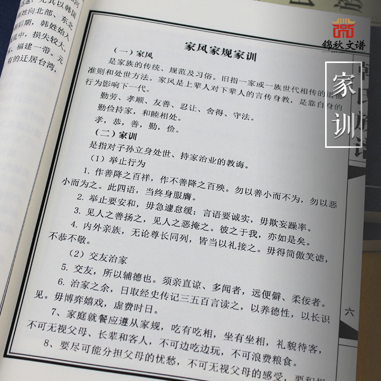 家訓(xùn)是家長對(duì)子孫立身處世、持家治業(yè)的教誨。是中國傳統(tǒng)文化的重要組成部分,也是家譜中的重要組成部分,它在中國歷史上對(duì)個(gè)人的修身,齊家發(fā)揮著重要的作用。