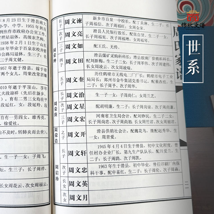 今天我們周氏后人有責任重續(xù)周氏家譜,發(fā)揚傳承祖先榮耀。家譜祥記:周氏家族的兒女都將寫入家譜之中。現(xiàn)在老家“朝”字輩最小,重修后按六十個字輩世代相傳(六十個字輩在正言中),這樣輩份不亂。最后愿我周氏族人身體健康,平安永長,在外游子學業(yè)有成,工作順利。愿后人世世代代都能找到故鄉(xiāng)之路:滑州南文明大街周府(現(xiàn)河南省滑縣九街新村)。愿先祖在天之靈,保佑周氏子孫后代興旺發(fā)達,繁榮昌盛,世代相傳。