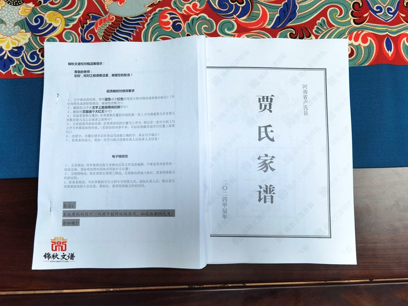 編修進展:《賈氏家譜》(三門峽盧氏)一校稿已郵寄。
