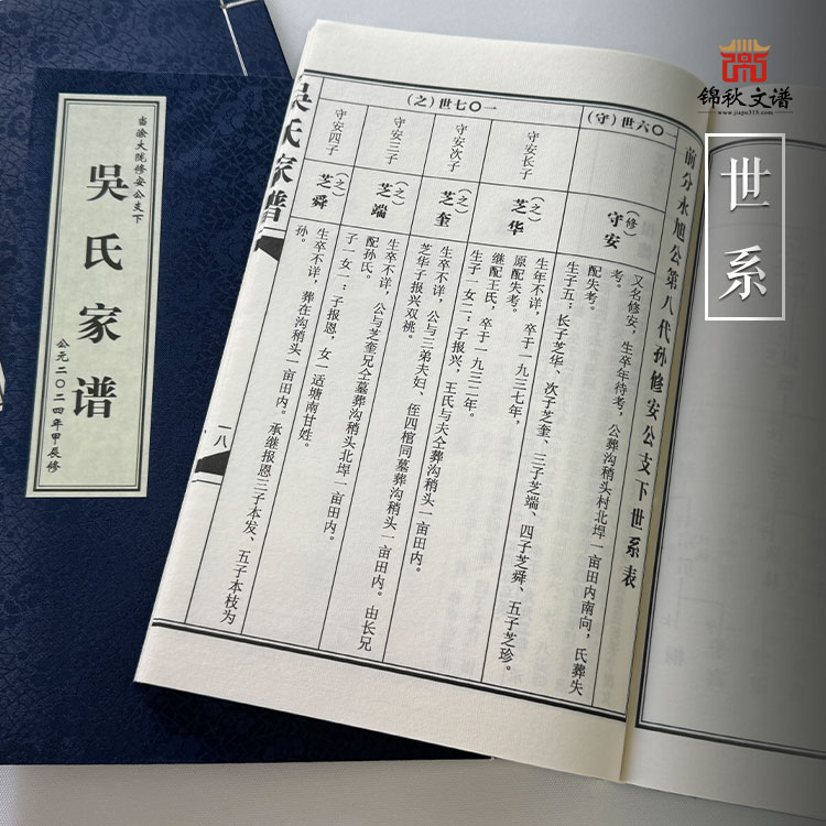 一、本家譜是涇縣茂林吳氏后裔守安(又名修安)公支下六代之圖譜。