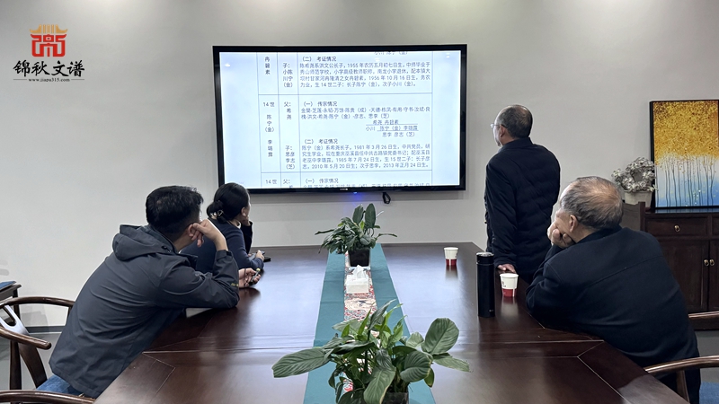 他們就近取譜,細(xì)細(xì)品鑒著宣紙彩頁與古譜紙彩頁之間的微妙差異以及老譜與新譜融合的效果。隨后,雙方就《官塘陳氏族譜》的脈絡(luò)展開了深入的交流與探討,每一個(gè)細(xì)節(jié)都如同家族史上的璀璨星辰,熠熠生輝。