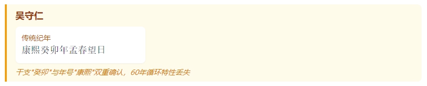 老譜中的生歿紀(jì)年,本質(zhì)上是一套與農(nóng)耕文明緊密相連的“時(shí)間密碼”。傳統(tǒng)社會采用“陰陽合歷”(農(nóng)歷),以月相確定月份,以節(jié)氣劃分歲時(shí),日期記錄常包含“天干地支 + 年號 + 農(nóng)歷月日”的復(fù)合信息。例如,《吳氏宗譜》記載:“吳守仁,康熙癸卯年孟春望日生”?!翱滴豕锩笔悄晏柵c干支的雙重確認(rèn)(康熙二年,即 1663 年),“孟春望日”即農(nóng)歷正月十五。這一記錄既符合當(dāng)時(shí)官方歷法,又與民間“春耕開始”的節(jié)令認(rèn)知高度一致。