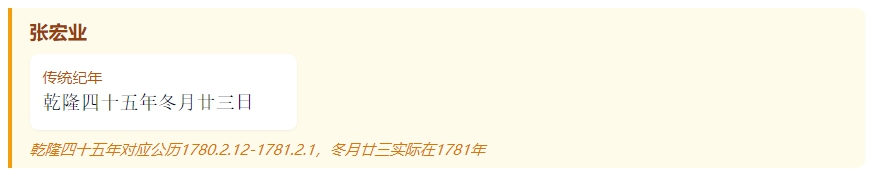 強(qiáng)行添加公元年,首先暴露出歷法轉(zhuǎn)換的“偽精確性”。以“乾隆四十五年”為例,其對應(yīng)的公歷時(shí)間為 1780 年 2 月 12 日至 1781 年 2 月 1 日(因農(nóng)歷春節(jié)在公歷 2 月)。若老譜記錄某人生于“乾隆四十五年冬月”(農(nóng)歷十一月),對應(yīng)的公歷可能是 1780 年 12 月或 1781 年 1 月,具體日期需參照當(dāng)年農(nóng)歷與公歷的逐日對照。但翻錄者往往直接采用“乾隆四十五年 = 1780 年”的簡單對應(yīng),將“冬月廿三”生硬標(biāo)注為“1780 年 12 月 25 日”,卻忽略了乾隆四十五年農(nóng)歷十一月初一實(shí)際是公歷 1780 年 12 月 26 日,“冬月廿三”應(yīng)為 1781 年 1 月 17 日。這種“想當(dāng)然”的轉(zhuǎn)換,導(dǎo)致時(shí)間記錄出現(xiàn)跨年度誤差,讓后人誤以為祖先生于 1780 年,實(shí)則已進(jìn)入 1781 年。