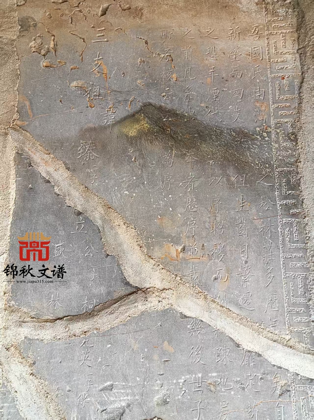 在錄辨松林莊古碑林時,與北京國強進入文革十年中用以生產(chǎn)用的銨水池中,清掃擦凈,敬香拜祀,逐序辯識。因碑石眾多,又損磨嚴(yán)重,加之鳳化剝蝕。辯認(rèn)十分困難,只好利用放大,光射等手段。幸而可辯錄十之八九。在北壁中段,發(fā)現(xiàn)了沂南國氏舊遷傳說的這塊碑記。