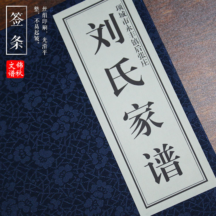項城永豐劉氏家譜印刷實圖展。家譜印刷加工技術分為線裝書本加工和書函加工。本產品的生產工藝流程如下: