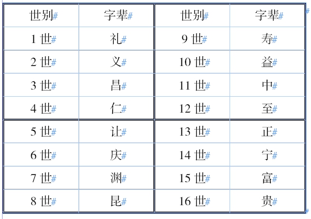 一、據(jù)太史公司馬遷追敘胡氏世家源流及舊譜所載,吾族從滿公后二十九世允安公開(kāi)始,以行字排班計(jì)輩分(即排班用字),從允安公至存仁公(訥)計(jì)四十世排班用字照錄于后: