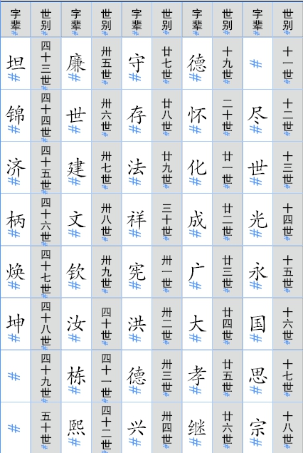 (注:二十世前使用的姚家花園的老字輩,二十一世后使用太康姚氏族譜的字輩)