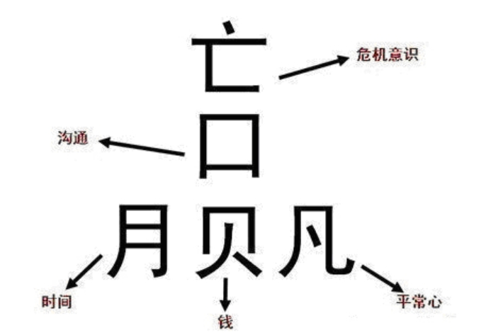 “ 贏”由五個(gè)漢字組成:亡、口、月、貝、凡,包含著贏家必備的五種意識(shí)或能力。