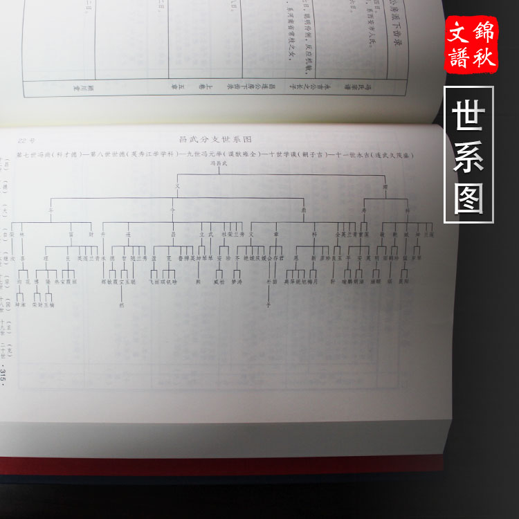 八、配置一至十二世總世系圖。十二世以后以“昌”字輩為單元配置世系圖,以備檢索。世系圖采用垂絲圖,其寓意為我世代子孫根深葉茂、垂柳絲絲、綿延不絕。