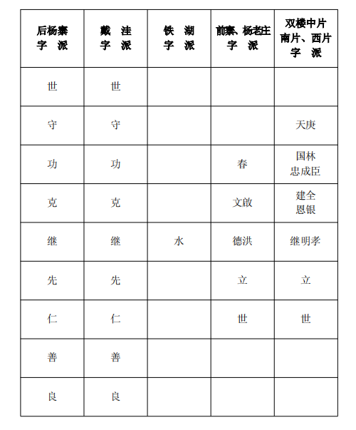 雙樓村楊氏支派相應(yīng)對(duì)照表