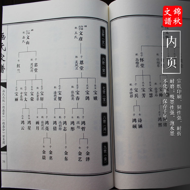三、理順了族枝輩分。在未修譜之前,我族個(gè)別族枝不知道畫(huà)氏先祖曾傳下:“萬(wàn)汝峰文堂寶鴻金廷岫”十個(gè)字作為本族新添后代起名字、排輩份之用,故出現(xiàn)了亂起名、不分輩份的情況,自一九九八年《畫(huà)氏家譜》頒布之后,這一大問(wèn)題得到了極大改進(jìn)。
